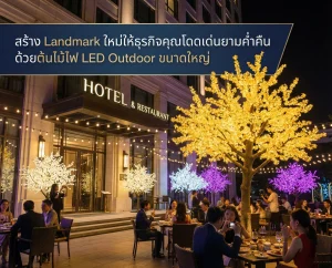 สร้าง Landmark ใหม่ให้ธุรกิจคุณโดดเด่นยามค่ำคืน ด้วยต้นไม้ไฟ LED Outdoor ขนาดใหญ่ ในสมรภูมิธุรกิจยุคปัจจุบัน แค่สถานที่ดี อาหารอร่อย อาจไม่เพียงพอ การสร้าง “First Impression” ตั้งแต่ลูกค้ายังไม่ก้าวเข้าร้านคือสิ่งสำคัญ โดยเฉพาะช่วงเวลากลางคืน… พื้นที่หน้าร้านหรือสวนของคุณ “มืดมิด” หรือ “เฉิดฉาย” จนใครผ่านก็ต้องหันมอง? ทำไมต้องเป็นต้นไม้ไฟ LED ขนาดใหญ่? แม่เหล็กดึงดูดสายตา